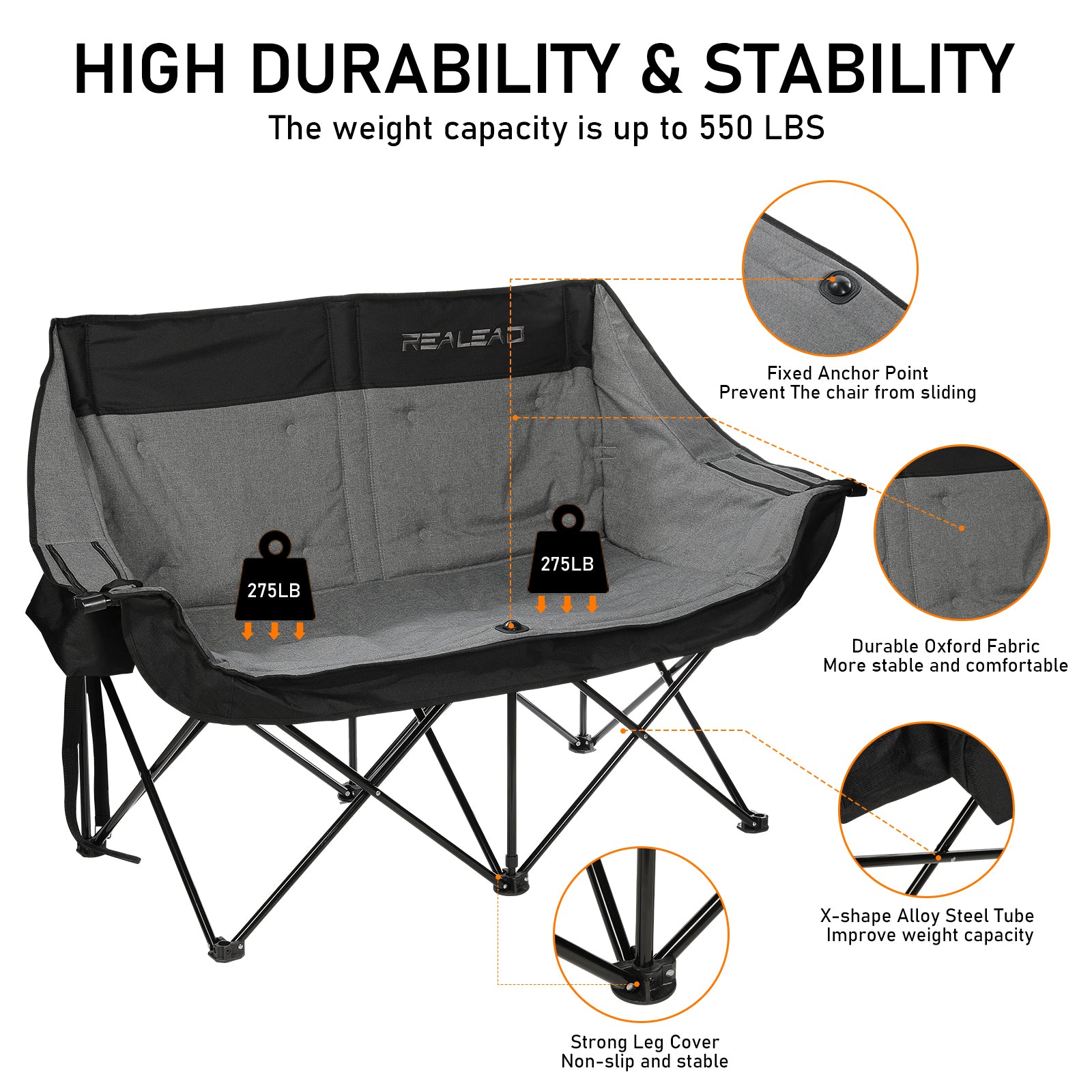 - High Durability & Stability: Boasts a durable hard alloy steel frame and sturdy Oxford fabric construction, supporting up to 550 lbs. Enjoy relaxation together without worrying about weight limits. Built to last for years of outdoor adventures.