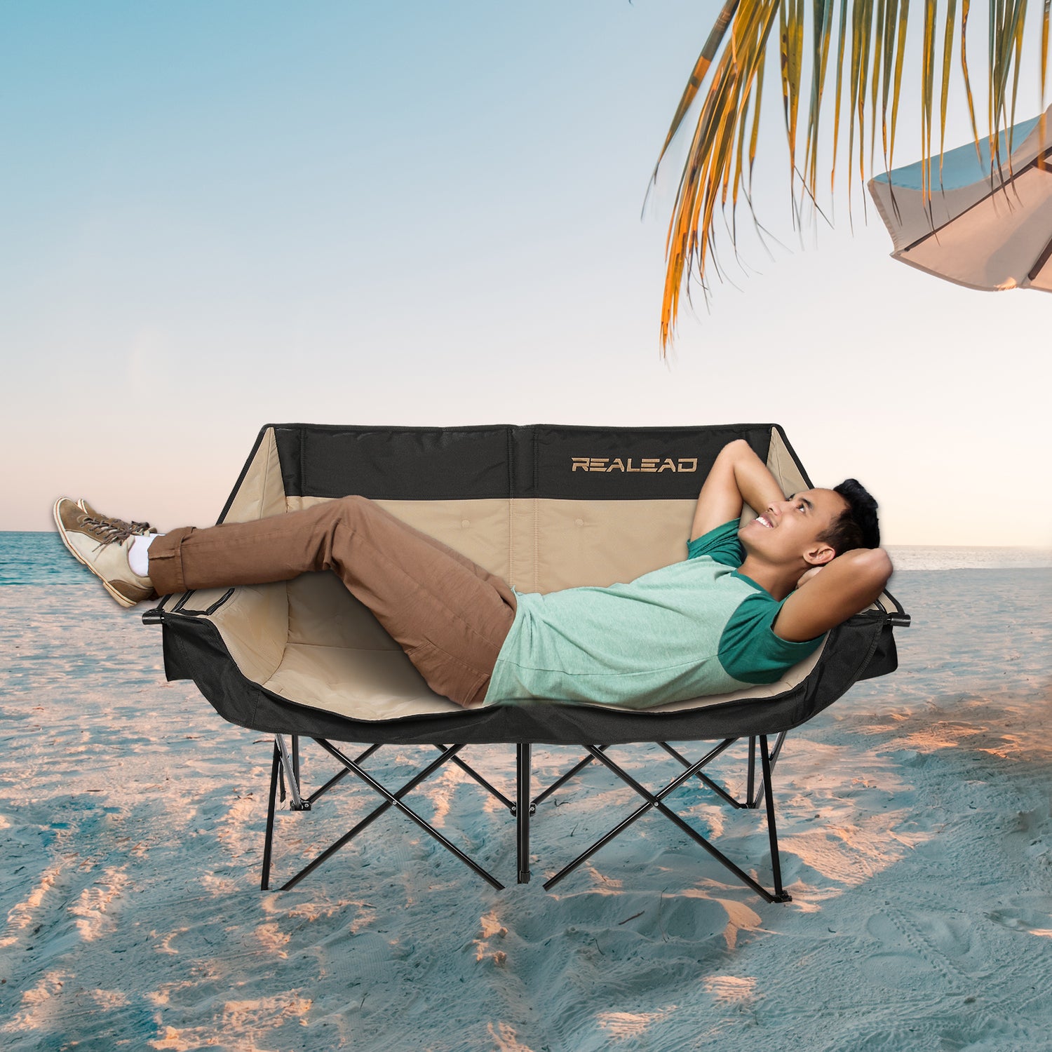 One of the design features of the REALEAD camping chair is the movable backrest. It utilizes a non-fixed backrest structure that allows your back and lumbar area to move more freely for a more comfortable camping experience.