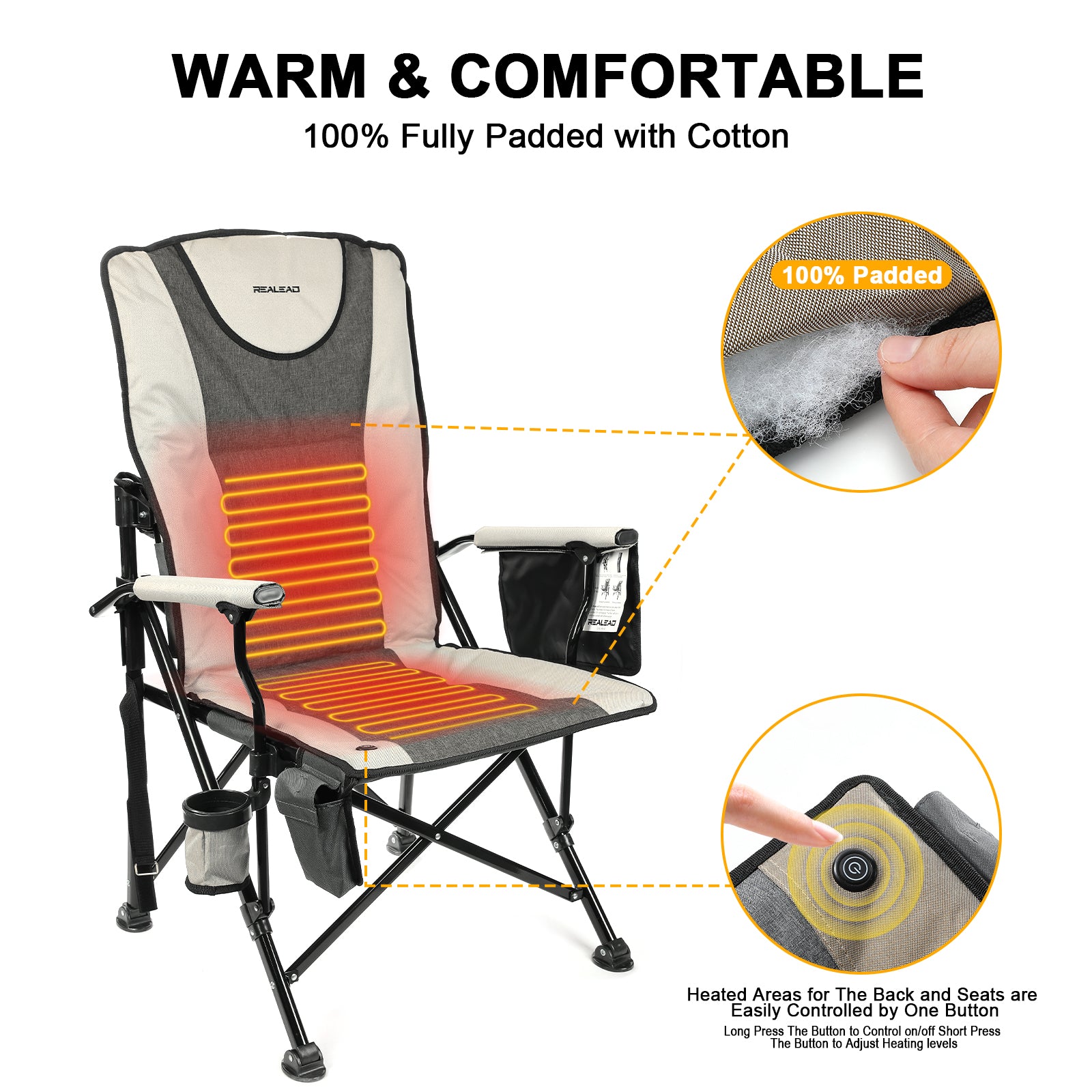 - Adjustable Heating Levels: Stay warm outdoors with USB-powered heating technology offering three adjustable levels for both back and seat, perfect for chilly activities like sports games.